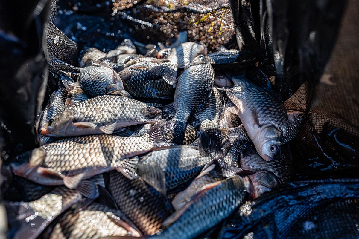 낚시대를... 하나씩 접고 있는데... 계속.. 들어오는 붕어들의 입질...