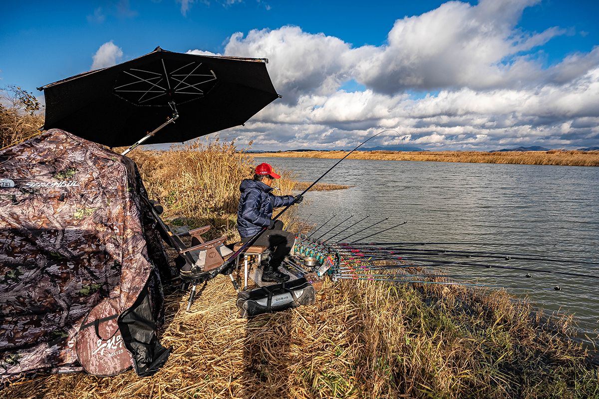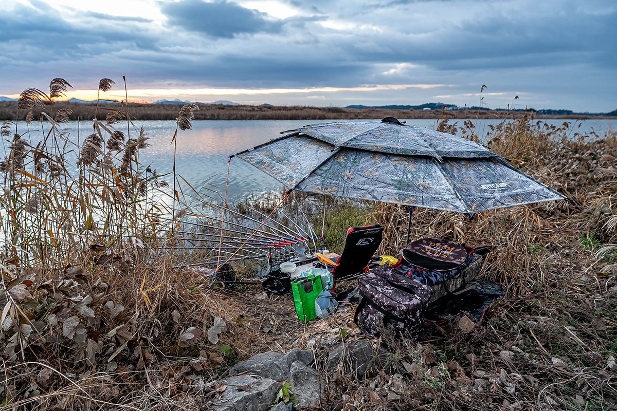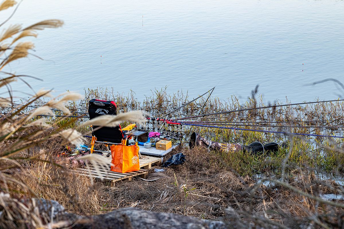 오늘은.. 간촐하게.. 발판좌대를 펴고... 10대의 낚시대를 세팅해 봅니다...
